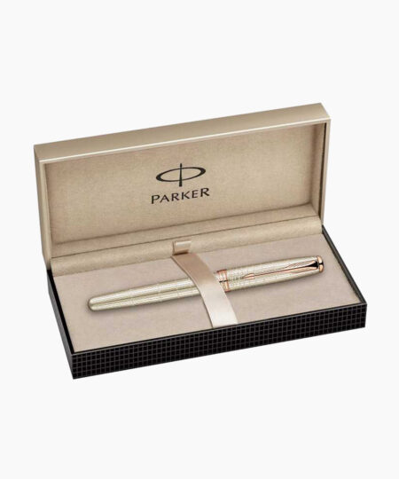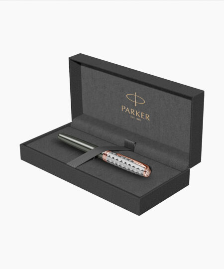 Stilou Personalizabil Parker Velvet Sterling Silver GTRead more- Accesorii din alama placate cu aur roz 23K. Clip din otel inoxidabil placat cu aur roz 23K