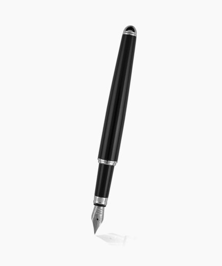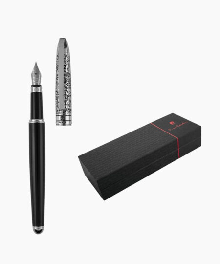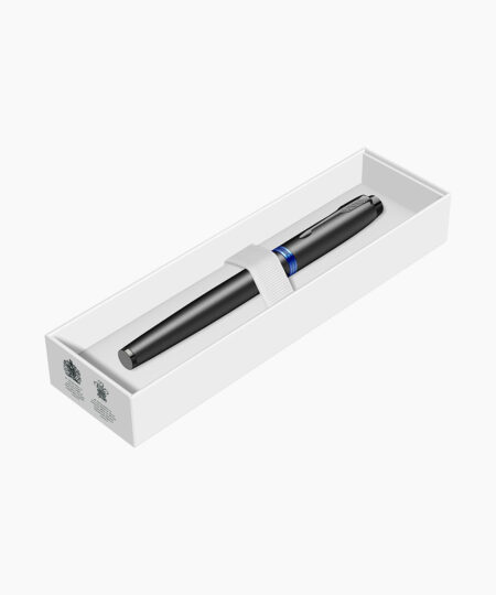 - Penita din otel inoxidabil lacuita integral prin tehnologia PVD cu multiple straturi de lac negru lucios, avand in varf pastila de iridiu. Stiloul functioneaza atat cu cartuse, cat si cu convertor