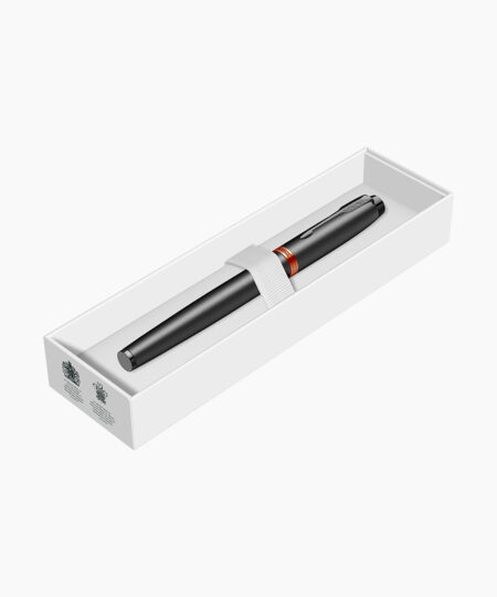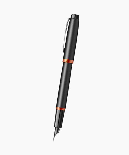 Stilou Personalizabil Parker Vibrant Rings Flame OrangeRead more- Accesorii din alama placate cu aliaj black trim si inele placate prin tehnologie PVD cu aliaj orange metal. Clip din otel placat cu aliaj black trim