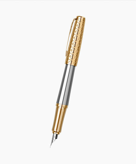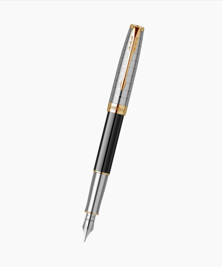 - Penita din otel inoxidabil polisat placata cu crom, avand in varf pastila de iridiu. Stiloul functioneaza atat cu cartuse, cat si cu convertor