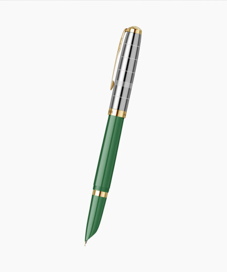 - Penita din aur masiv de 18K placata integral cu paladiu, avand in varf pastila de iridiu. Stiloul functioneaza atat cu cartuse, cat si cu convertor