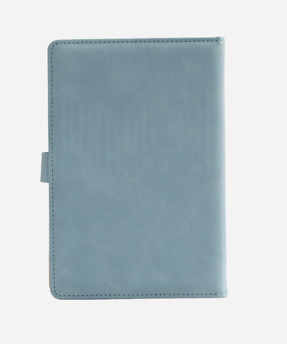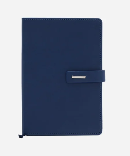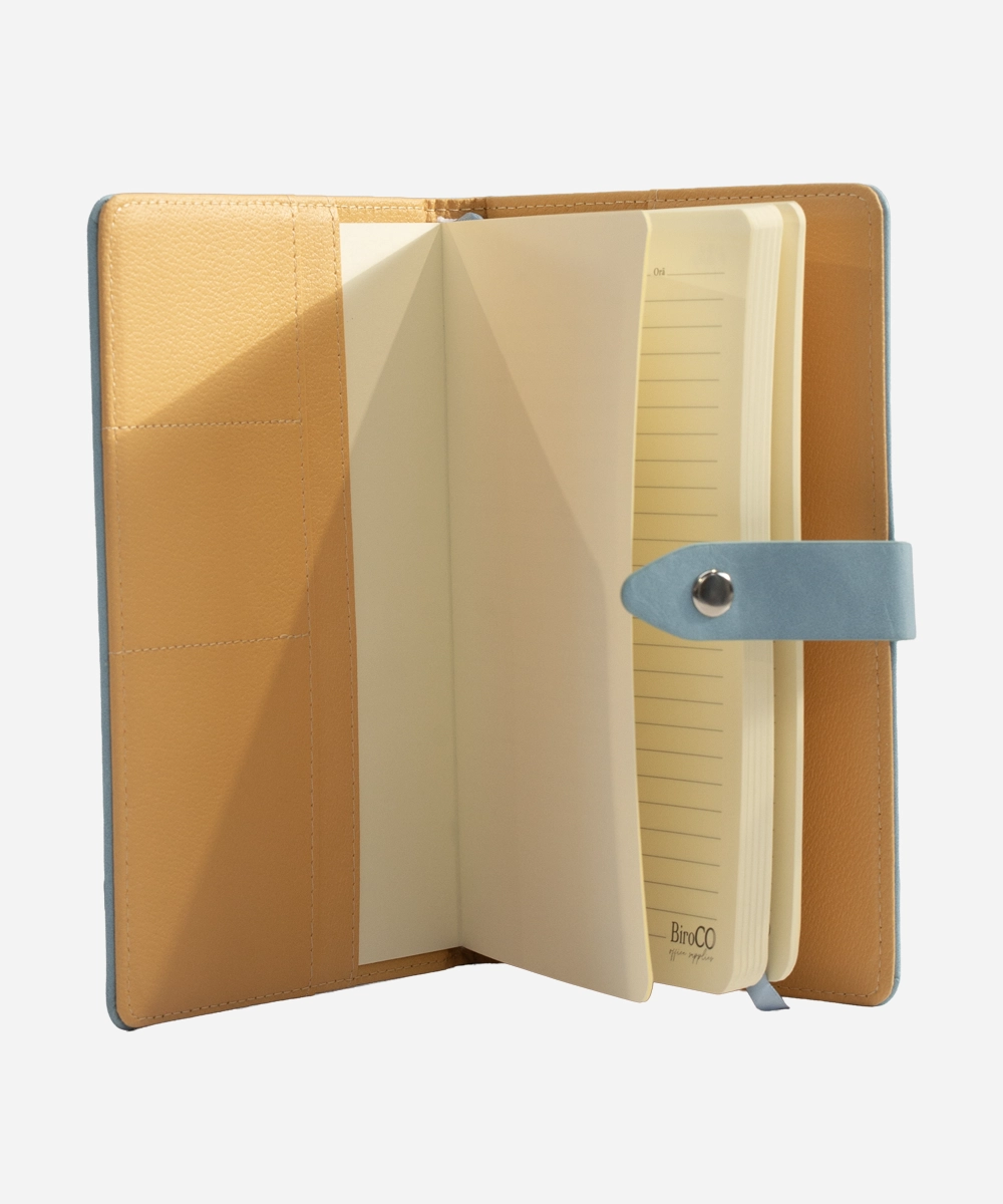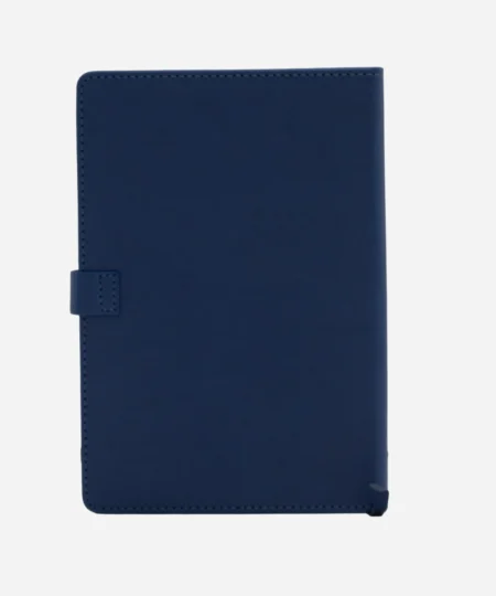 Agenda nedatată Biroco, format A5 (14,5×21 cm), are 96 de file din hârtie ivory de 80 g/mp, imprimată cu linii fine. Coperta este realizată din piele ecologică (PU) pe carton rigid de 1,5 mm, prevăzută cu buzunar frontal și închidere metalică tip capsa, în stil refill. Include forzaț din hârtie albă de 120 g/mp. Culoare copertă: albastru. Ambalare: 40 bucăți/cutie.